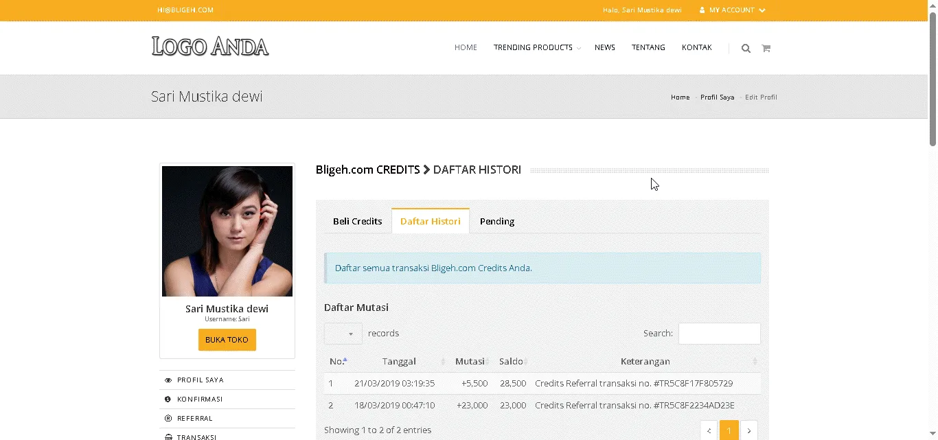 | Nama Klien | Bligeh.com |